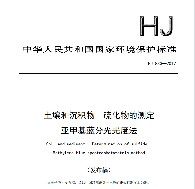 HJ 833—2017土壤和沉積物 硫化物的測(cè)定 亞甲基藍(lán)分光光度法 HJ 833—2017土壤和沉積物 硫化物的測(cè)定 亞甲基藍(lán)分光光度法 更新日期:2023-01-03 下載包(1)
