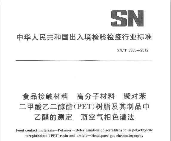 SNT 3385-2012 食品接觸材料 高分子材料 聚對(duì)苯二甲酸乙二醇酯(PET)樹脂及其制品中乙醛的測定 頂空氣相色譜法 適用范圍本標(biāo)準(zhǔn)規(guī)定了聚對(duì)苯二甲酸乙二醇酯(PET)樹脂及其制品中乙醛的頂空氣相色譜測定方法。本標(biāo)準(zhǔn)適... 更新日期:2020-05-09 下載包(1)