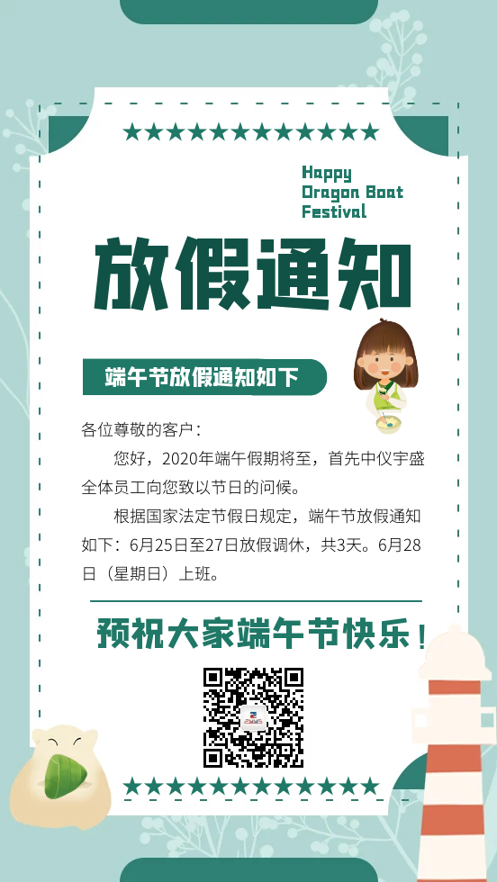 中儀宇盛端午節(jié)放假通知 更新日期:2020-06-22